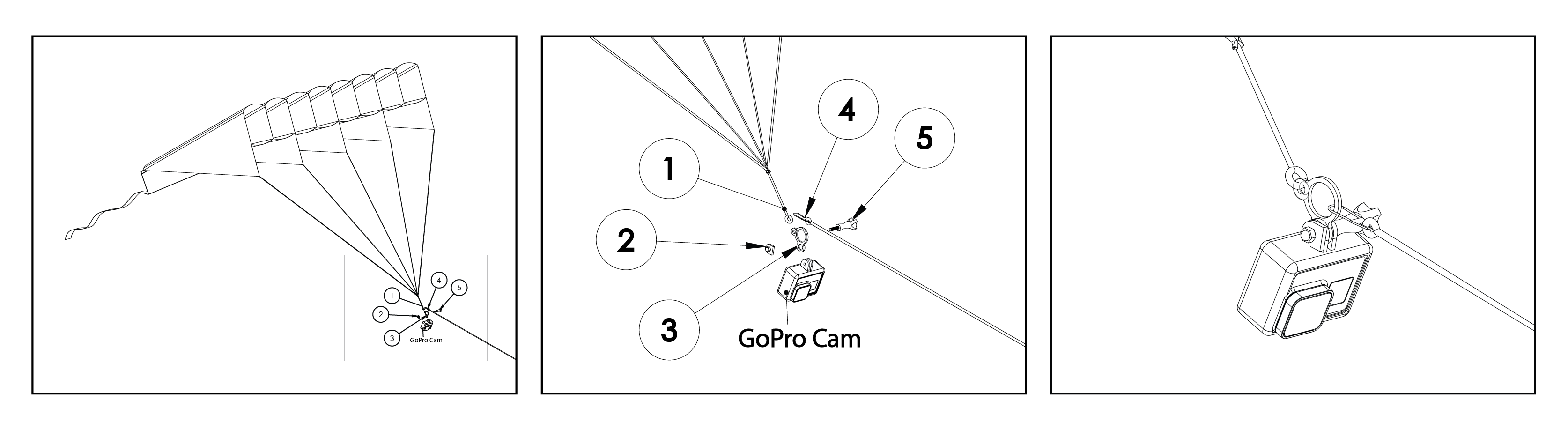 • 1. מיתר מהקייט, 2. אום רבע עם הגבהה, 3. מתאם מצלמה, 4 מיתר 001מ', 5. בורג רבע