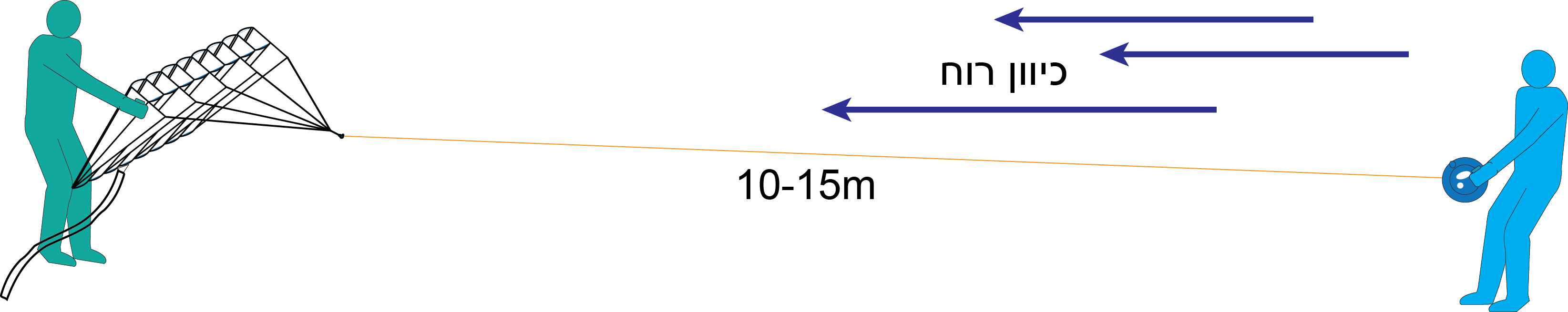 • ש לפרוס מהגלגלת 10 מ' עד 15 מ' כאשר הגלגלת פונה נגד כיוון הרוח והמיתר הפרוס עם כיוון הרוח.