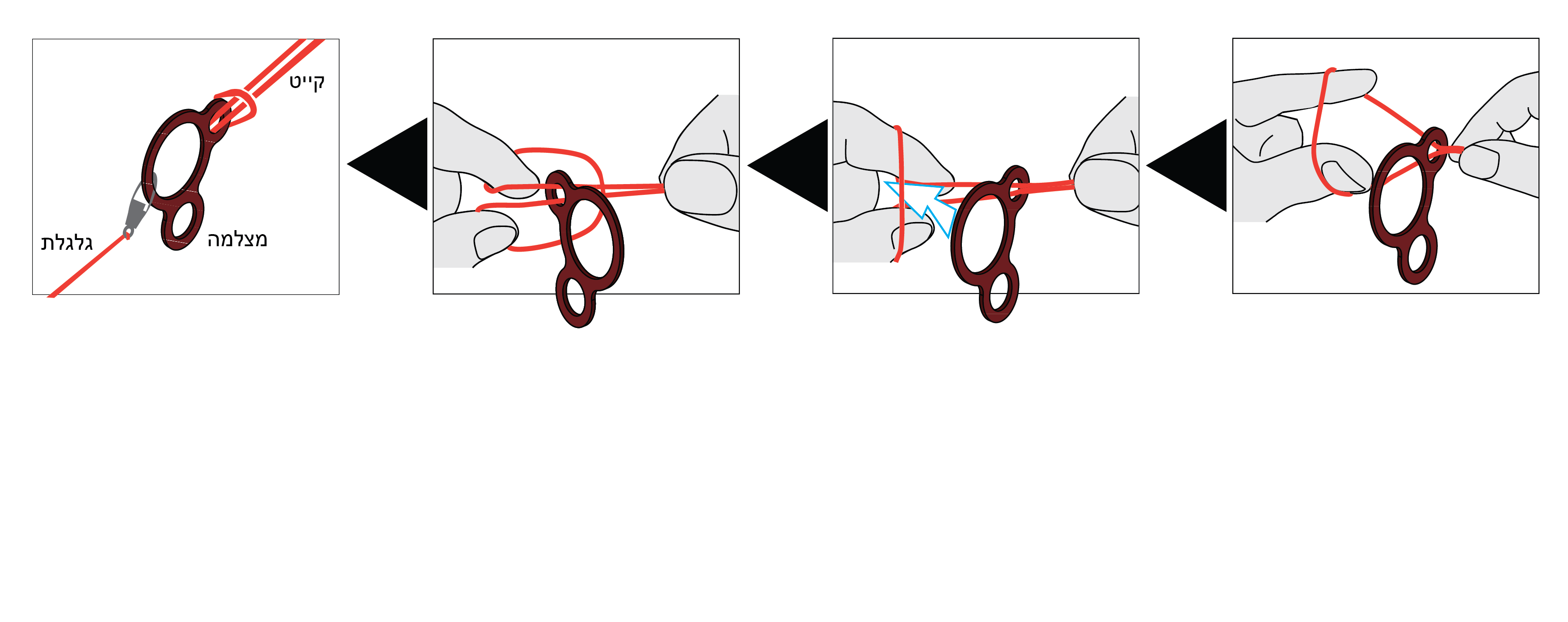 • על מנת להוריד את הקייט חזרה, יש לגלגל את הגלגלת תוך התקדמות לכיוון.